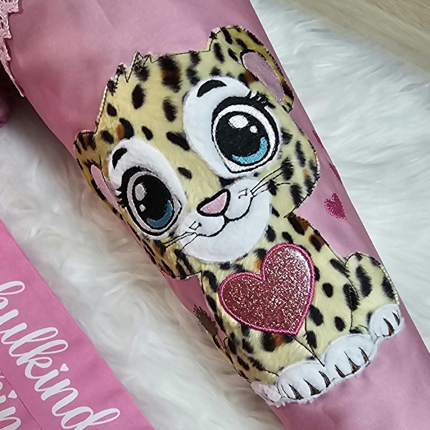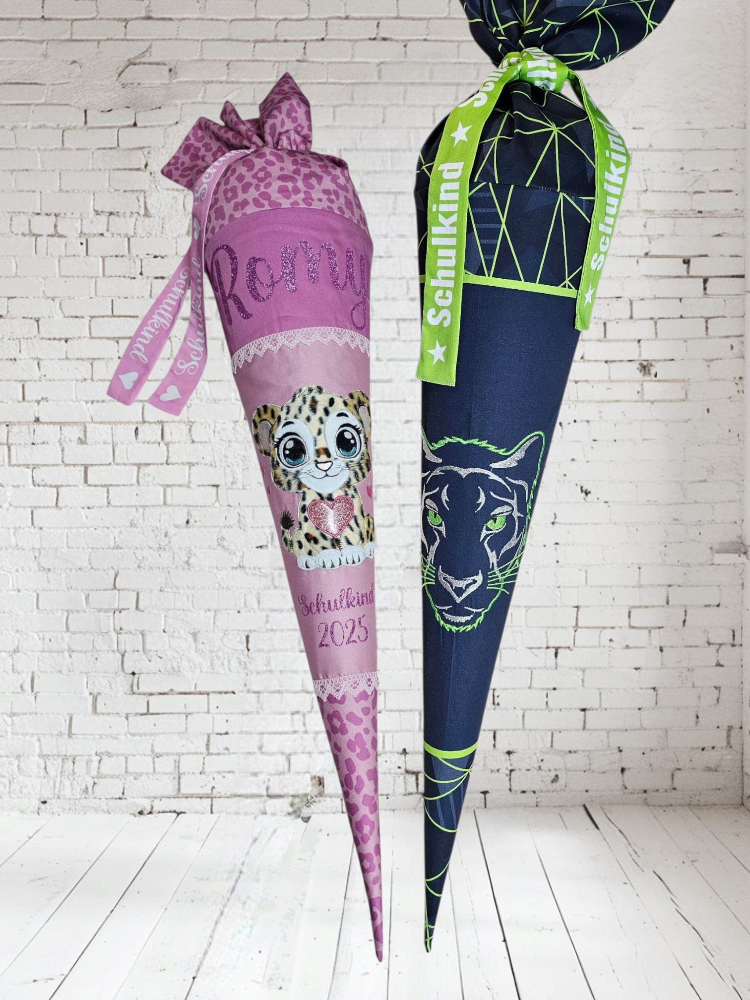 Schultüte mit Applikation / Stickerei / Stickmotiv - 70cm oder 85cm - Panther auf Dark with Stripes - S26-2