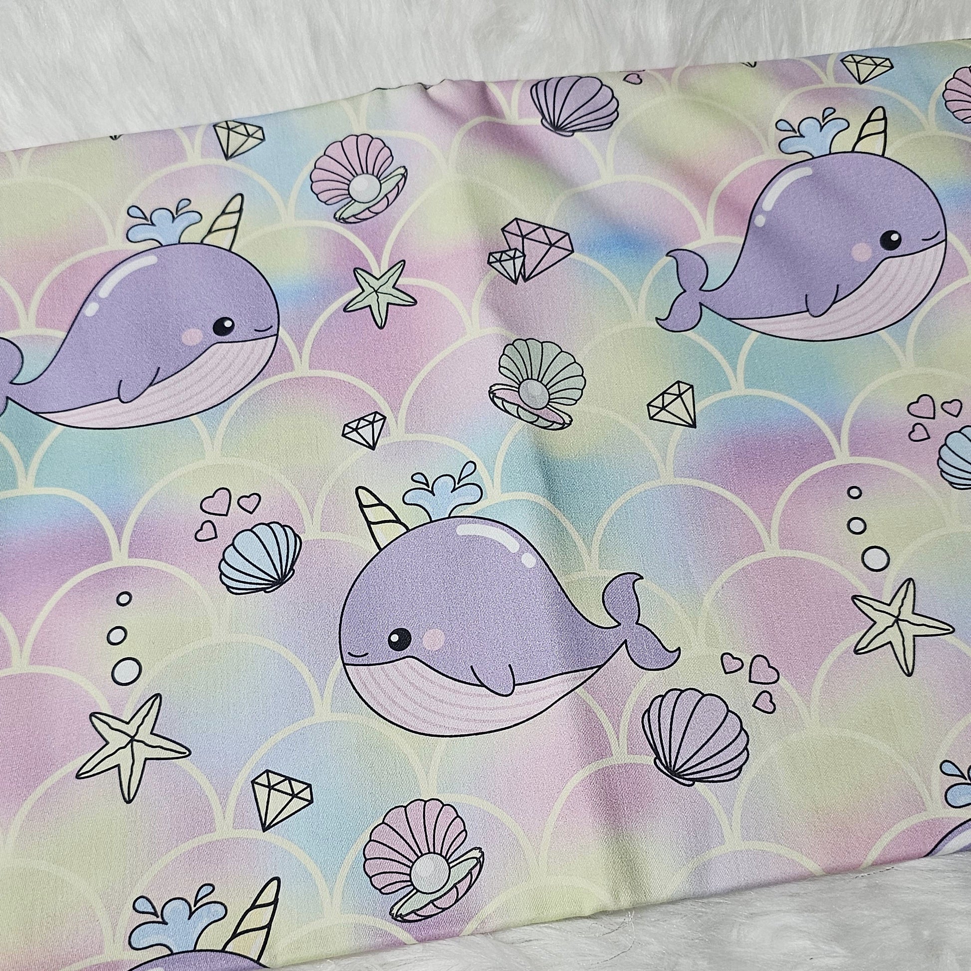 Sofortkauf: Baumwolle ca. 150 x 100 cm - Wale auf Regenbogenschuppen