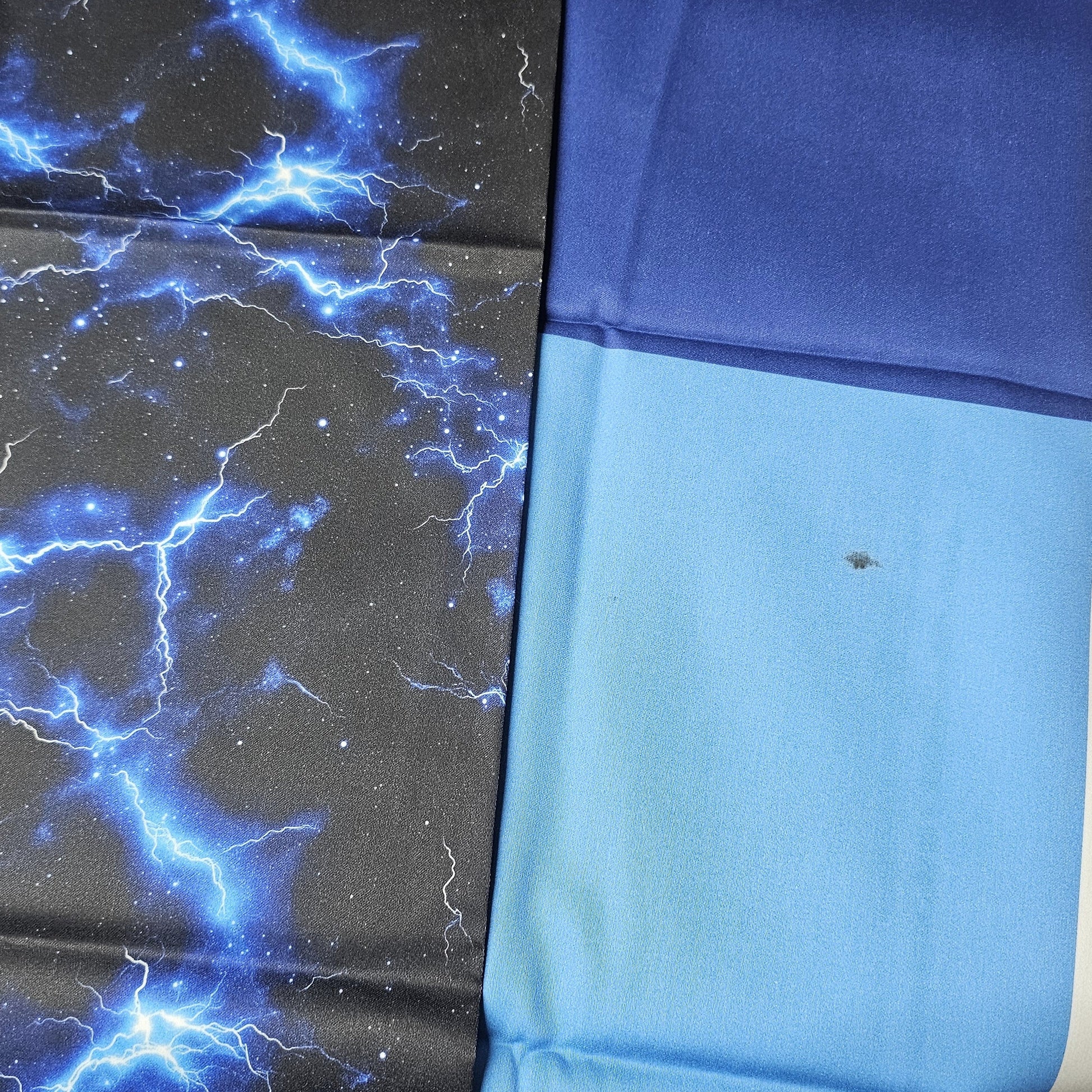 Sofortkauf: Baumwolle Stoffmix ca. 150 x 100 cm - Blitze Blau, Flecken im hellblauen Stoff