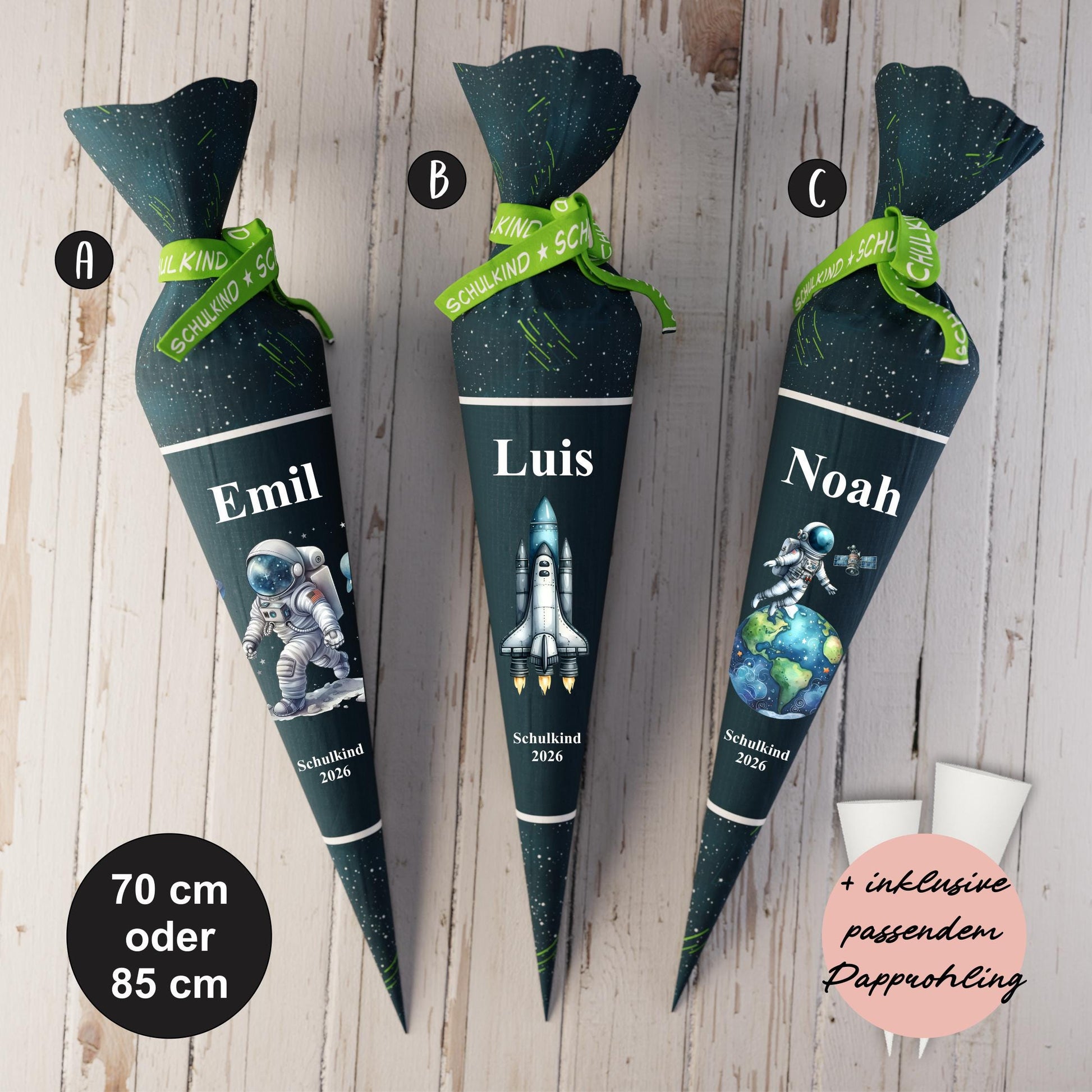 Schultüte: Astronaut, Rakete - DIY Näh-Set 70 cm oder 85 cm - selber nähen oder fix&fertig genäht - Galaxy Wars inkl. Papprohling