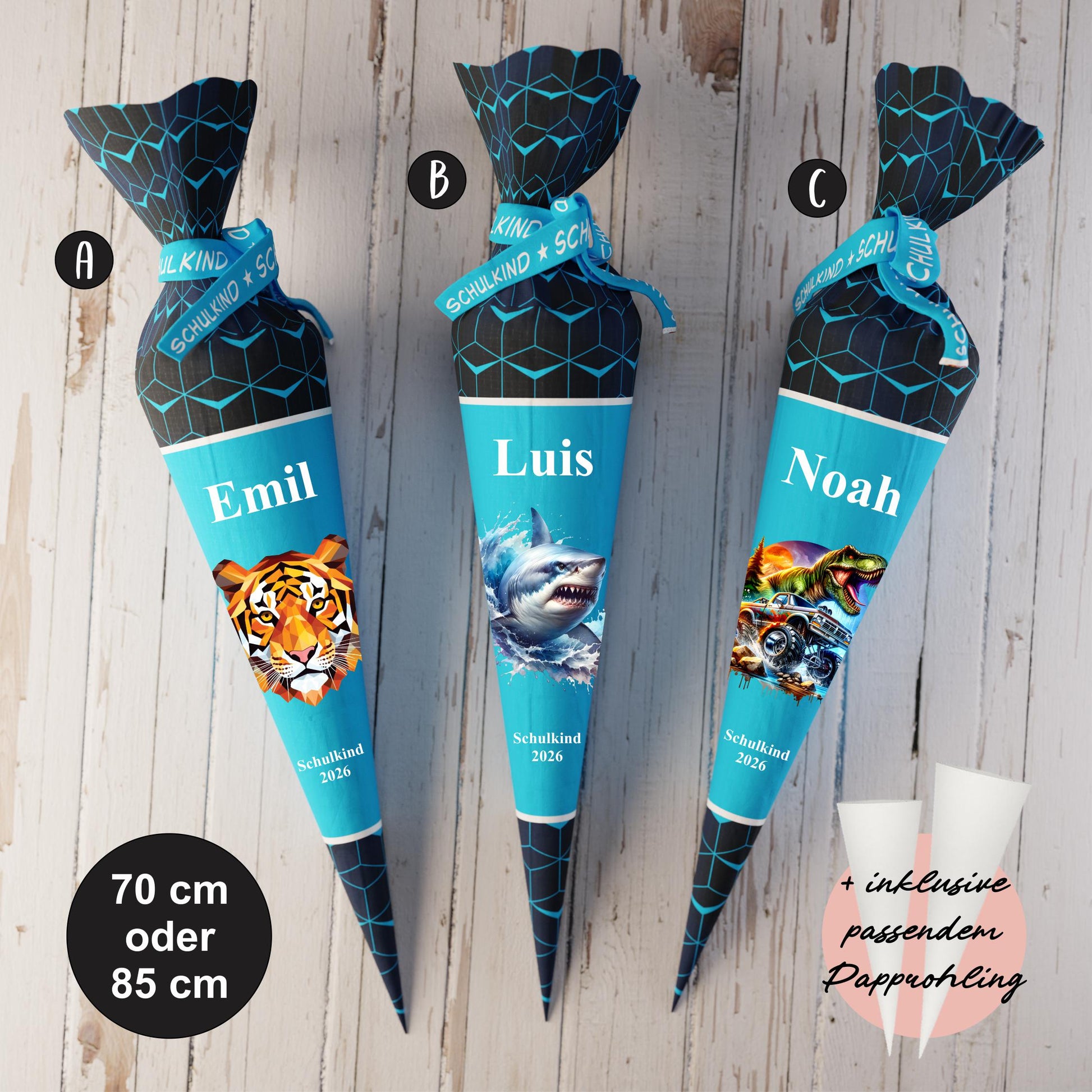 Schultüte: Tiger, Hai, Dino - DIY Näh-Set 70 cm oder 85 cm - selber nähen oder fix&fertig genäht - Night Cubes inkl. Papprohling